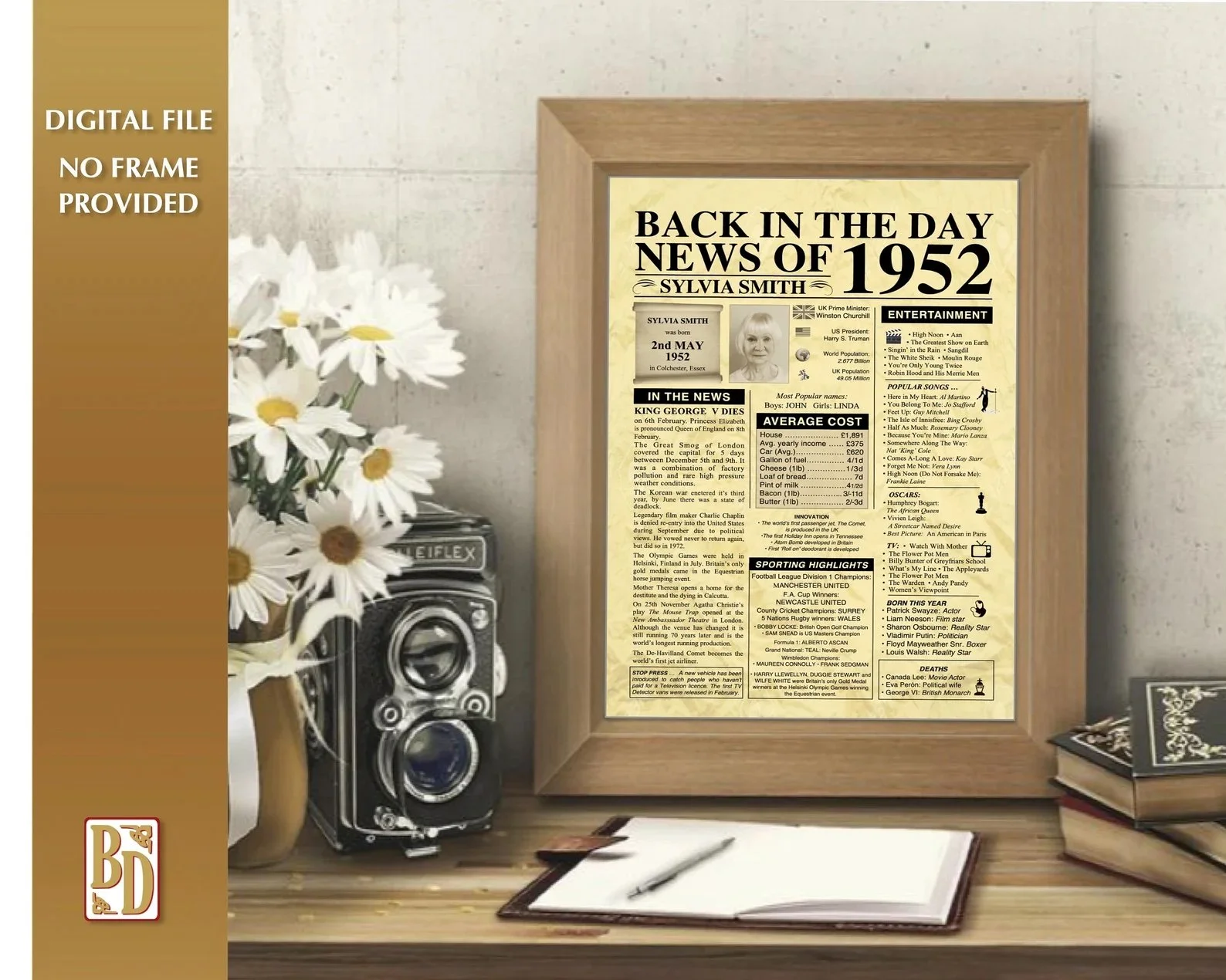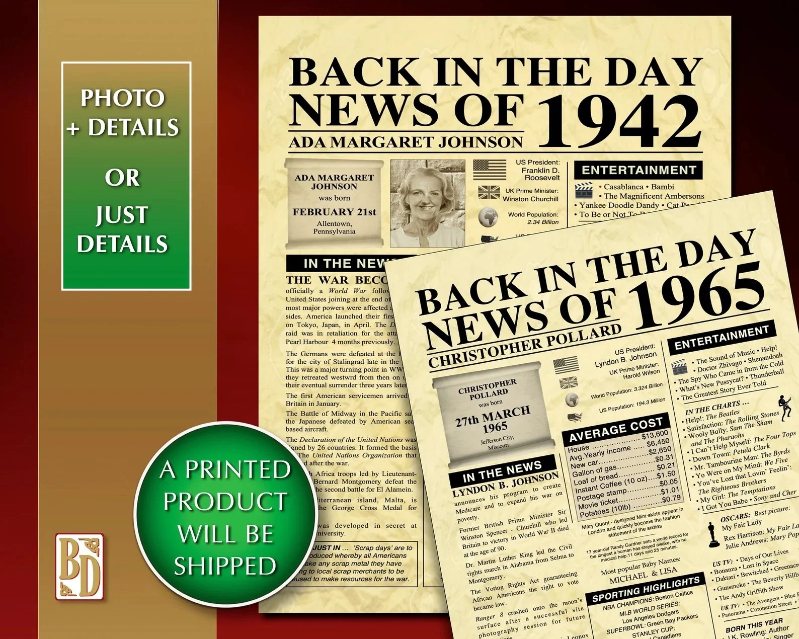 This is a personalised newspaper style poster that can be for ANY year to celebrate the year of birth or a special occasion. It can make an ideal birthday gift for a loved one