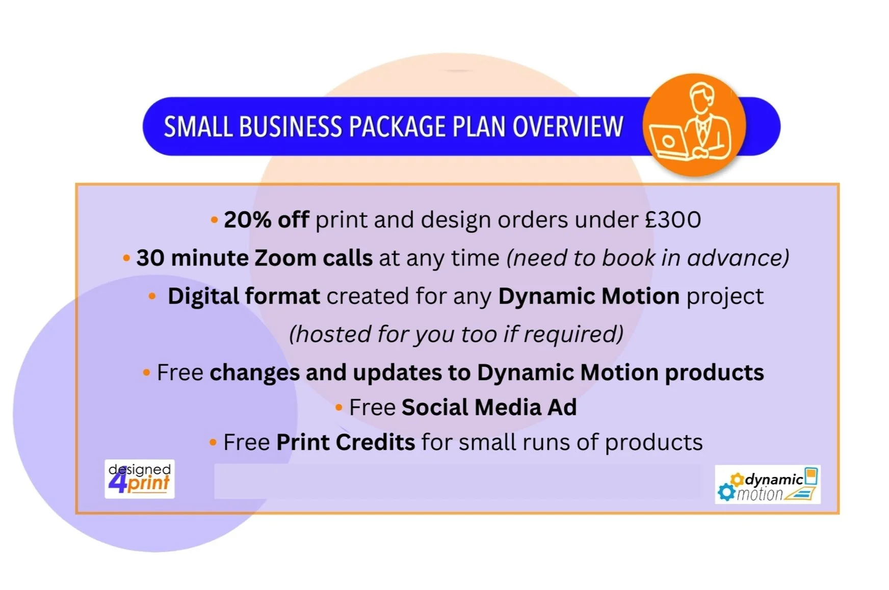 Print and design work often turns out to be more complicated than first thought and this often raises the need for unplanned discussion, so free zoom calls up to 30 minutes at any time are part of the deal