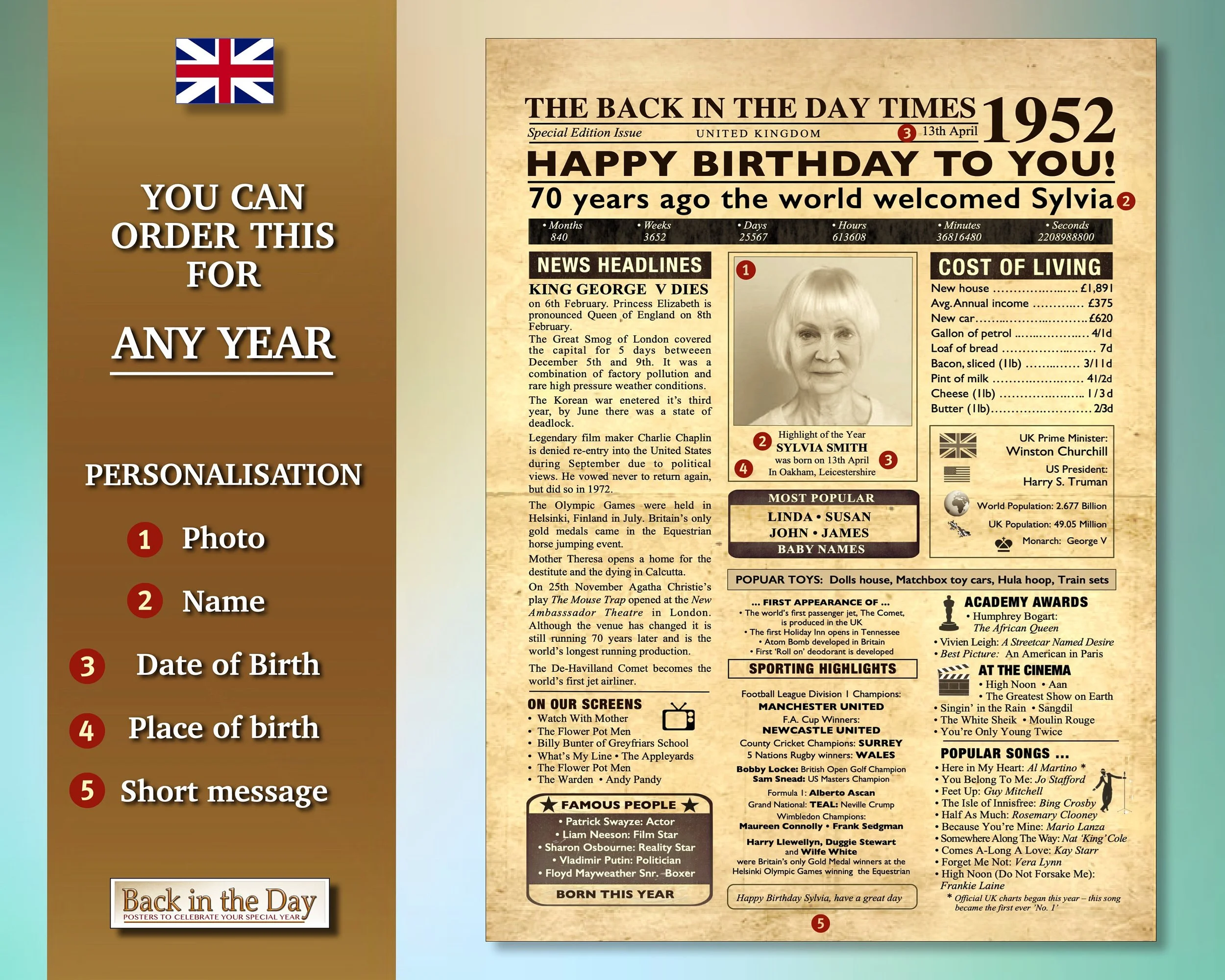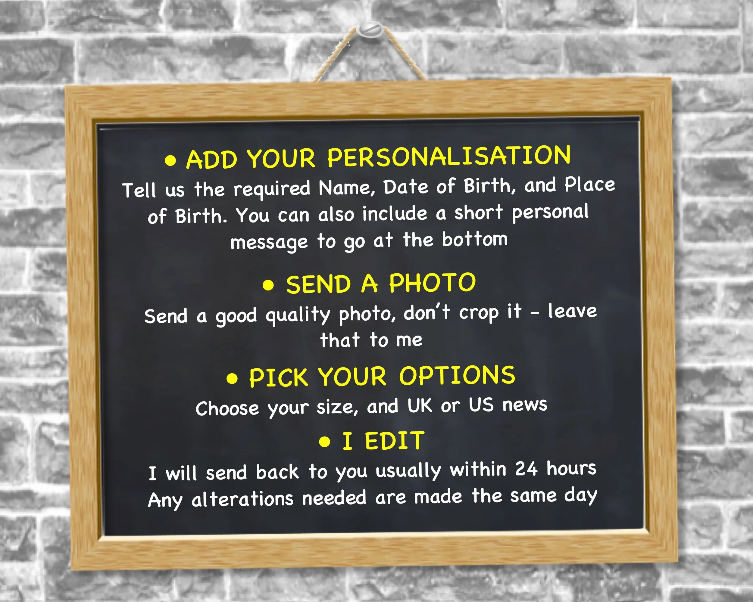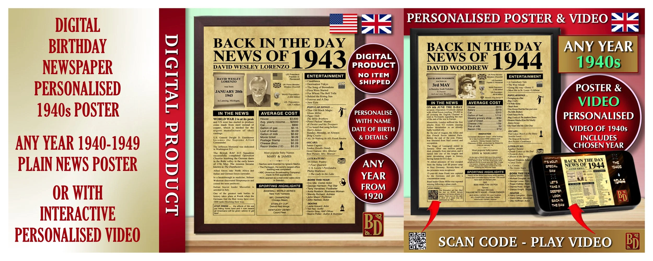 All products Categories: All Back in Any Year POSTERS News / Video BESTSELLERS News Direct DOWNLOADS Direct DOWNLOADS Colour 1920s -1930s POSTERS Back in 1940s POSTERS Back in 1950s POSTERS Back in 1960s POSTERS Back in 1970s POSTERS Back in 1980s POSTERS Back in 1990s POSTERS Back in 2000s POSTERS Back in 2010-20 POSTERS Historical POSTERS Anniversary POSTERS Special Occasion POSTERS Personalised CARDS QUIZZES & Trivia PRINTED items Great Moments in SPORT All products All | Back in Any Year POSTERS | News / Video BESTSELLERS | News Direct DOWNLOADS | Direct DOWNLOADS Colour | 1920s -1930s POSTERS | Back in 1940s POSTERS | Back in 1950s POSTERS | Back in 1960s POSTERS | Back in 1970s POSTERS | Back in 1980s POSTERS | Back in 1990s POSTERS | Back in 2000s POSTERS | Back in 2010-20 POSTERS | Historical POSTERS | Anniversary POSTERS | Special Occasion POSTERS | Personalised CARDS | QUIZZES & Trivia | PRINTED items | Great Moments in SPORT | Dynamic Motion Premium from £79.00 Sale Select DM Brochure DM video and QR code linked to Brochure supplied DM video and QR code linked to Brochure designed from scratch Purchase Added! Dynamic Motion Basic from £40.00 Select QR code linked Dynamic Motion Video Short DM video up to 20 seconds with a branded QR code Short DM video up to 75 seconds with a branded QR code Purchase Added! A5/DL Brochures with Dynamic Motion from £62.00 Sale Select No. Required 25 50 100 200 500 Purchase Added! Dynamic Motion Standard Sale Price: £75.00 Original Price: £95.00 Sale DM video with QR code / Flyers 50 DM video with QR code /Bus Cards 25 Purchase Added! Essential A5 Flyers from £33.00 View Options A6 Flyers from £28.00 View Options DL Folded Leaflets from £72.00 View Options Dynamic Motion Video from £25.00 View Options A4 Posters from £16.00 View Options Short run A3 Posters from £28.00 View Options Standard Business Cards from £27.00 View Options Premium Business Cards from £30.00 View Options Standard Letterheads from £16.00 View Options Designer Letterheads from £32.00 View Options Standard With Com;iments from £17.00 View Options Designer Compliment Slips from £38.00 View Options Neighbourhood Cards from £20.00 View Options Booklets and Brochures from £69.00 View Options PVC Vinyl Banners from £31.50 View Options Roller Banners from £38.00 View Options Certificates from £0.00 View Options DL Envelopes from £46.50 View Options C6 Envelopes from £71.00 View Options Standard Bookmarks from £35.10 View Options Short run Bookmarks from £9.90 View Options Standard Invitations from £0.00 View Options Premium Quality Invitations from £28.90 View Options Digital Brochures from £38.00 View Options The year you were born 1980, Celebration Chalkboard style Poster, back in the day 1980. UK version £3.99 Purchase Added! 60 Years ago back in 1963 Old Newspaper style Anniversary Poster, UK version £25.00 Sold out Sold Out Added! 40th birthday gift for him or her, 1983 vintage birthday newspaper poster sign £10.00 Purchase Added! The year you were born 2008, Celebration Chalkboard style Poster, back in the day 2008. US version £3.99 Purchase Added! 60 Years ago back in 1963 Old Newspaper style Anniversary Poster, UK version £4.49 Purchase Added! January 2024 Birthday/special day Poster. Printable Capricorn/Aquarius Star Sign Poster for any day in January £6.49 Purchase Added! PRINTED, The year you were born, Any Year,Personalised Newspaper poster UK version, Back in the Day, Birthday Sign from £14.49 View Options January 2024 Birthday/special day Poster. Printed Capricorn/Aquarius Star Sign Poster for any day in January from £12.50 Select Print, Laminated with Hanger, Framed A4 Printed only 8x10 printed only 11x14 Printed only A3 printed only A4 Laminated-Hanger A4 Light Oak Frame A3 Light Oak Frame Purchase Added! 50 Years ago back in 1972 Old Newspaper style Anniversary Poster, UK version £3.99 Purchase Added! Personalised January 2024 Birthday/Special Day Printable Poster. Capricorn/Aquarius Star Sign Poster for any day in January £9.49 Purchase Added! Back in 1983 Old Newspaper style Anniversary Poster, UK version £4.49 Purchase Added! Personalised 1940s Newspaper Poster AND VIDEO UK Version for any year back in the 1940s Birthday Sign from £23.00 Select Video images - 60 Characters limit each Standard - no extras 1 extra slide image 2 extra slide images 3 extra slide images 4 extra slide images Purchase Added! 70 Years ago back in 1953 Old Newspaper style Anniversary Poster, UK version £4.49 Purchase Added! 1943, Celebration News Poster, back in the day 1943. US version £4.49 Purchase Added! Back in 1983 Old Newspaper style Anniversary Poster, UK version £4.49 Purchase Added! Back in 1983 Old Newspaper style Anniversary Poster, US version £4.49 Purchase Added! Back in 1970s Poster, Vintage Birthday Personalised Newspaper £10.00 Purchase Added! Personalised 1940s Newspaper Poster AND VIDEO US Version for any year back in the 1940s Birthday Sign from £23.00 Select Video images - 60 Characters limit each Standard - no extras 1 extra slide image 2 extra slide images 3 extra slide images 4 extra slide images Purchase Added! Personalised 1940s Newspaper Printed Poster AND VIDEO UK Version for any year back in the 1940s Birthday Sign from £24.00 View Options Personalised Framed 1940s Newspaper Printed Poster AND VIDEO, UK Version for any year back in the 1940s Birthday Sign from £33.00 View Options Personalised Framed 1940s Newspaper Printed Poster AND VIDEO, UK Version for any year back in the 1940s Birthday Sign from £33.00 View Options Back in 1935, Old Newspaper style poster, US version £3.99 Purchase Added! Victorian newspaper style historical posters, 1840s-1890s £14.00 Purchase Added! Victorian style newspaper, historical news, 1850s in Britain £3.32 Purchase Added! Back in 1950 poster. The year you were born Celebration News Poster, back in the day 1950. US version £3.99 Purchase Added! PRINTED,The year you were born